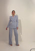 Pantalón palazzo de tiro alto en el mismo tejido.